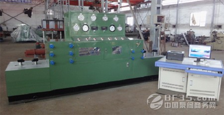 圖為YFS-ZC200t型智能型油田閥門專用試驗(yàn)臺(tái)是國內(nèi)水壓試驗(yàn)壓力最高的試驗(yàn)臺(tái),最高試驗(yàn)水壓為157.5MPa,均采用數(shù)據(jù)采集系統(tǒng)和遠(yuǎn)程控制系統(tǒng),符合API6A油田閥試驗(yàn)標(biāo)準(zhǔn),以及確保人員安全試驗(yàn)。使用于江蘇宏泰石化機(jī)械有限公司等單位。